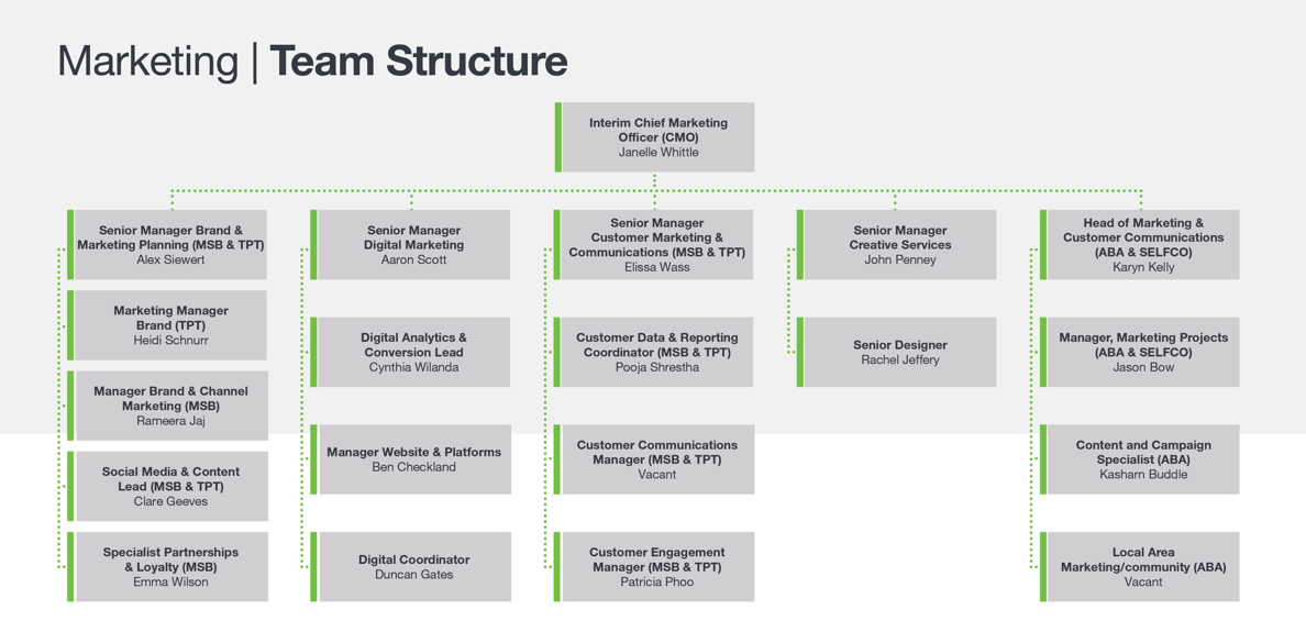 The Head of Marketing creates value through customer acquisition and retention as an enabler for business growth. The role is accountable for attracting and engaging more customers, aligning brand strategy with the customer experience and managing marketing investments in line with our cost per acquisition and activation targets. Primarily focused on the deposit portfolio for the bank brand(s), acquisition strategies will be required through digital channels to acquire new customers beyond our traditional markets; and as well as utilising our branch network to drive growth in our geographic foot print through regional Queensland and Tasmania. As the custodian of customer communications, this role has a key role in projects that have a customer impact as well as crisis management activities. This role will also be the subject matter expert on evolving our brand to increase the appeal in new and existing customer segments and markets. Effective leadership in this role is essential for guiding and inspiring teams to collaborate seamlessly in pursuit of our strategic objectives.