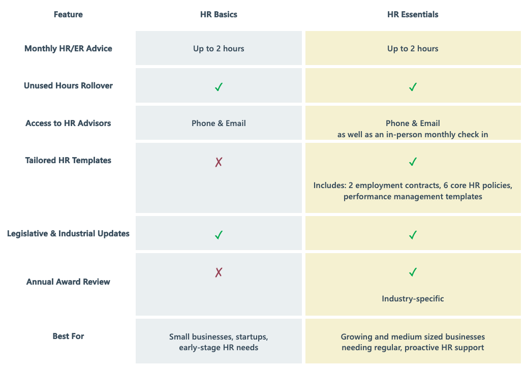 Ideal for startups, small businesses, or those just getting started with HR, the HR Basics plan gives you practical advice and flexible access to our team, without the complexity. With monthly support hours and rollover for unused time, you get dependable guidance when you need it, with no wasted resources.